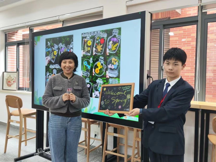 后李静轩同学又向大家详细地讲解了本次干花书签的制作步骤,最后由庄稼、奚嘉雯、陈怡蕾、范雨辰、