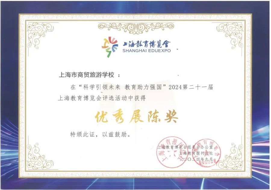 论坛>中华职业学校>商贸旅游学校>我校荣获2024第二十一届上海教育博览会评选活动优