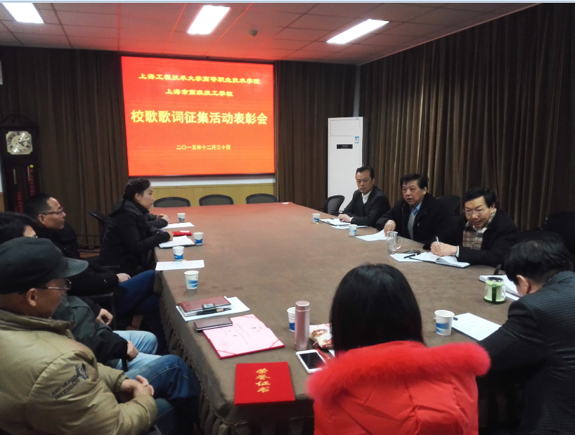 会上,获奖教师畅谈了创作思路和获奖感受。党委书记柳如荣感谢所有参与师生为承载校园文化精神的校歌所付出的努力,他希望完善后的校歌能在十三五规划期间成为弘扬学校精神、展示校园文化的亮丽名片。校长刘启中对校歌歌词的后期完善和谱曲提出了要求,他强调,学校要注重包括校标、校歌、校园文化雕塑等在内的一系列校园文化载体的建设,希望它们能成为教育、激励、凝聚全校师生,传承校园文化的精神动力。