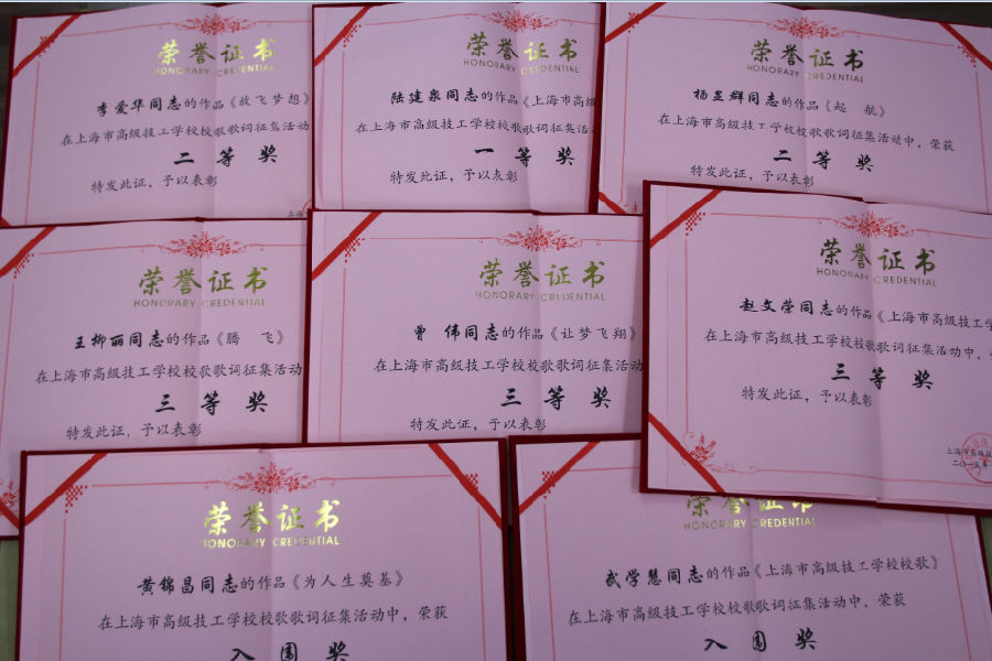 日前,上海市高级技工学校校歌歌词征集活动的获奖情况已经出炉。来自校内外的6首歌词原创作品分获一二三等奖,其中斩获一等奖的歌词作品由本校教师陆建泉原创,另有2首作品获得入围奖。