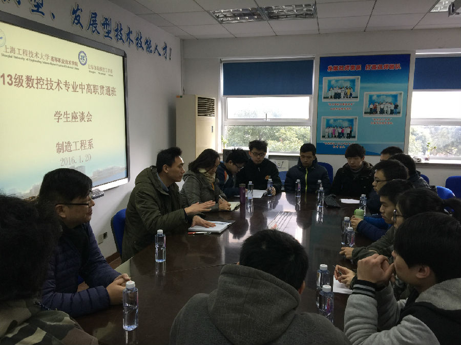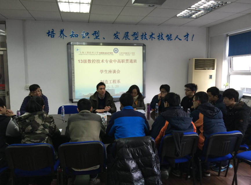 2016120日上午,高职学院、高级技校召开了13级中高职贯通班学生座谈会。会议由制造工程系主任万军主持,系部书记朱红新、副主任刘素华、贯通班班主任徐保亮、曹志鸿及学生代表参加会议。