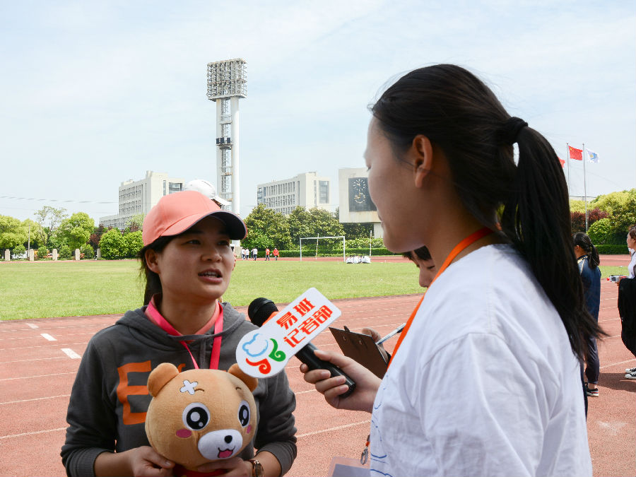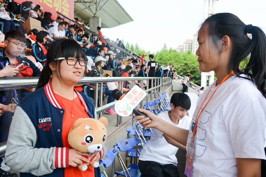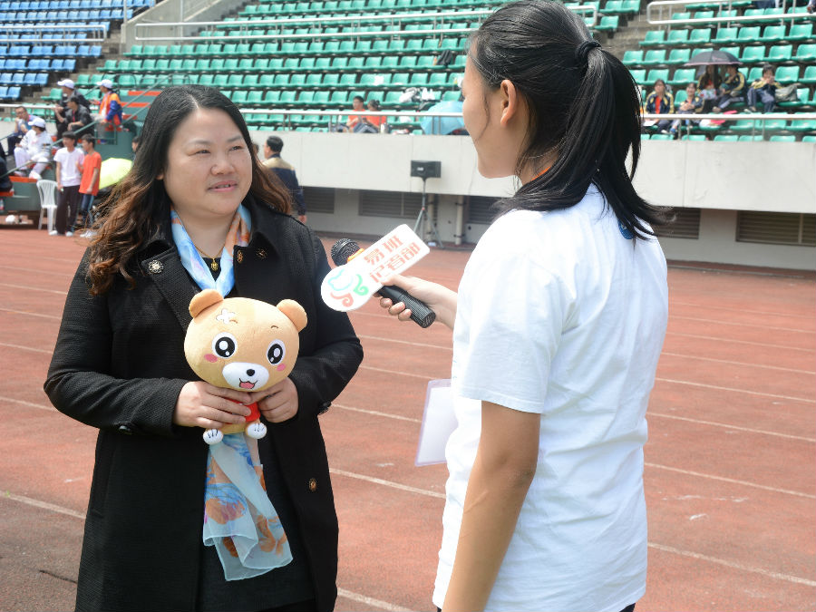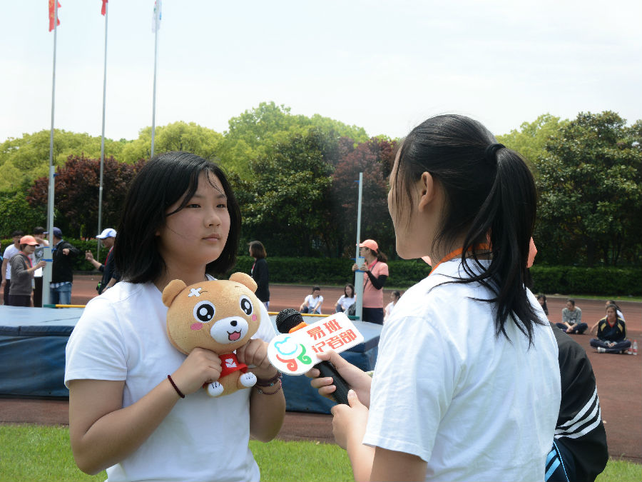运动场上不仅有斗志昂扬的运动员,还有满腔热情的采访小队。为了向外展示我校运动会的精彩盛事,采访小队相继对老师、裁判、家长、冠军、运动员、观众进行了一系列的采访。