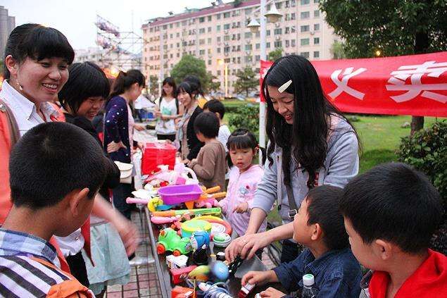 活动当日,参加义卖的居民们到达指定位置。小区门口贴着“奉献爱心,传递真情”的红色横幅,十分耀眼。每个家庭摆出家中不再需要的物品进行出售,如闲置的书籍,日常用品,玩具和衣服等。他们都有一个属于自己的小摊位,迅速布置好义卖的物品后,合理贴上标价。小区的部分孩子们为此次义卖活动特意做了手工制品,甚至在家长的陪同下制作了味美的点心,且均已最低价格售出。