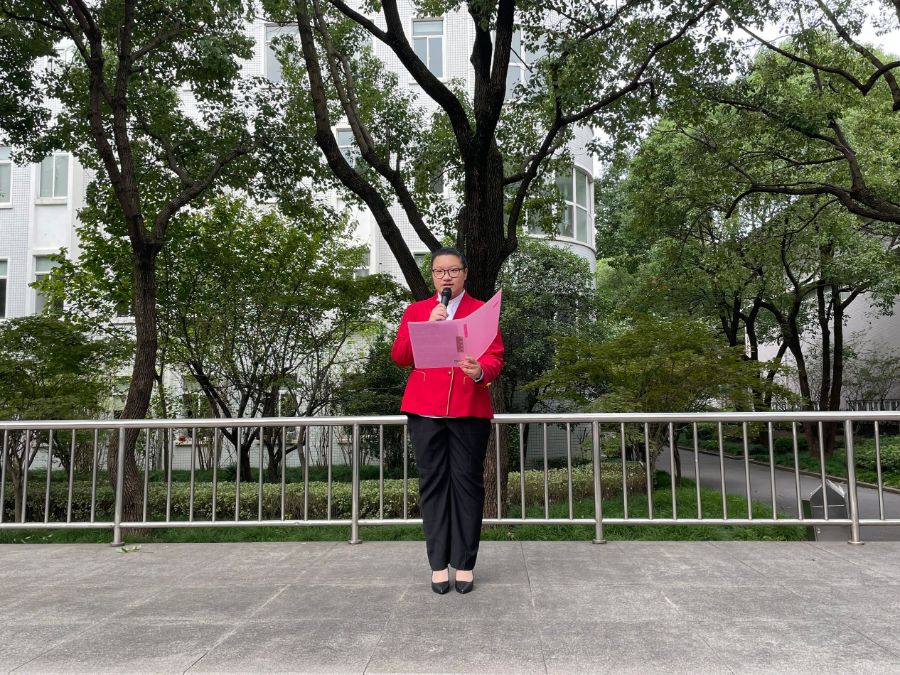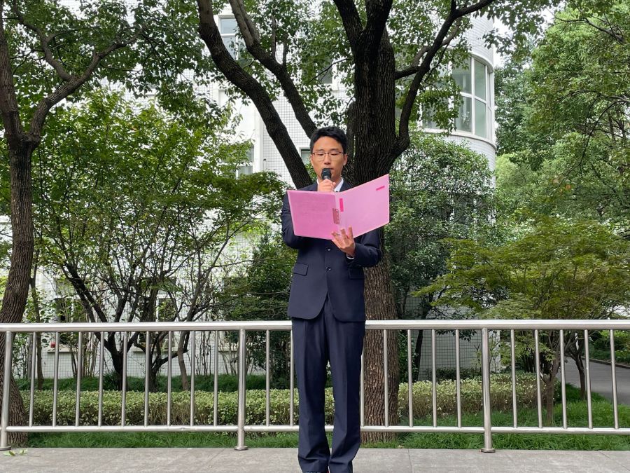 本次升旗仪式由19级艺术与科技中本贯通班的顾琰主持,由20金融中高班的李泰格发表了她的看法。