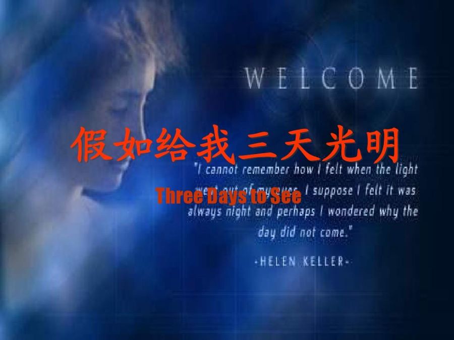 光明,一个令人神往的词语,拥有了光明,就能拥有一切美好的事物.假如我是一位盲人,什么都看不见,假如某一天我拥有了只能持续三天的光明,而不是一生的话,这是多么悲哀!