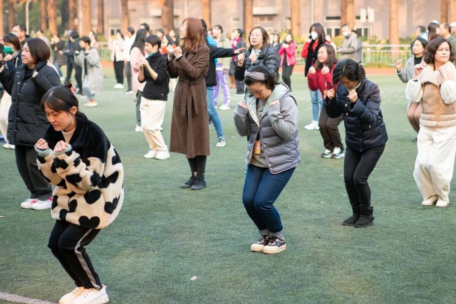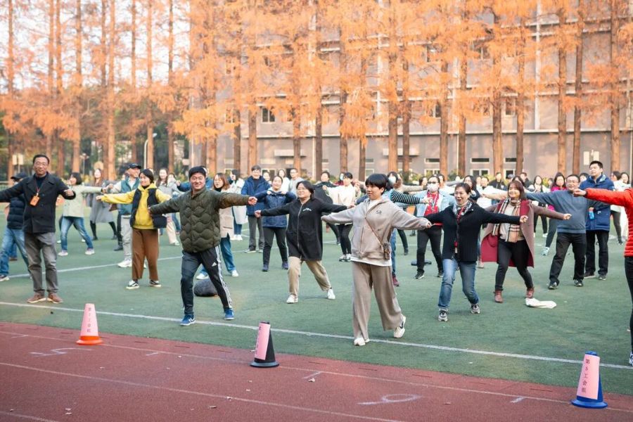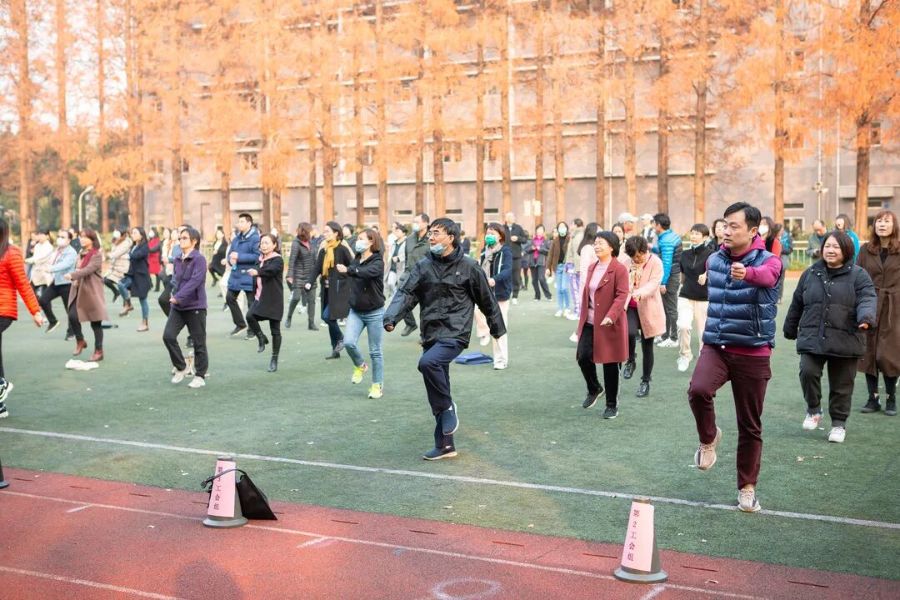 2021年12月10日下午15点,全校教职工齐聚操场,在三位体育老师的带领下学练第九套广播体操。一伸一展一转体,全体教职工伴着律动感十足的音乐,精神抖擞地做起广播体操。这既是美的享受,又陶冶情操,让每个人保持良好的精神状态。广播体操不仅能缓解工作疲劳,丰富教职工生活之余,还能展现出教职工青春活力,塑造强健的体魄。