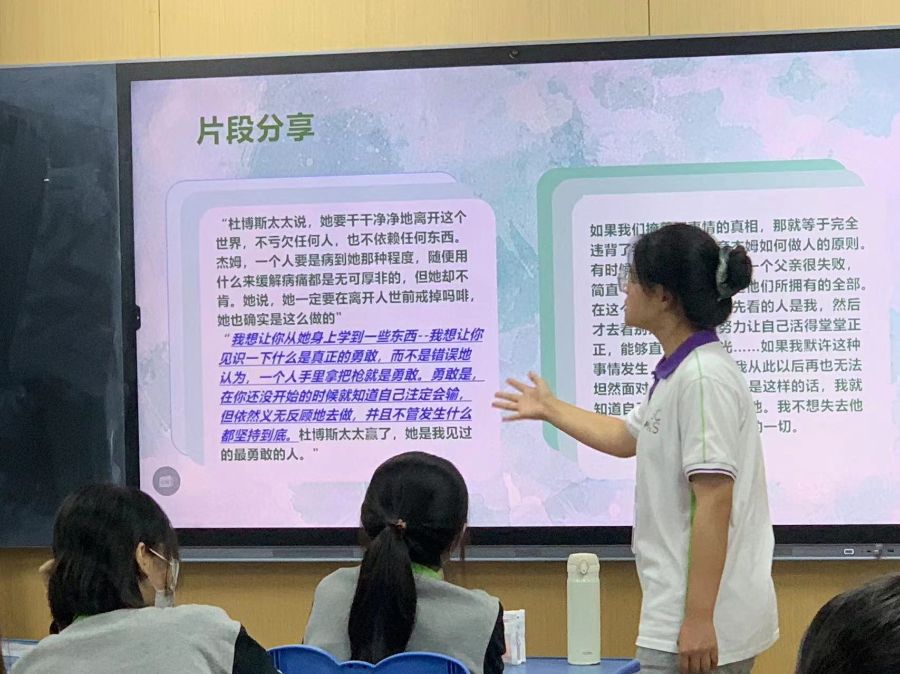 同学在讲台上分享自己喜欢的书真的好有趣啊!