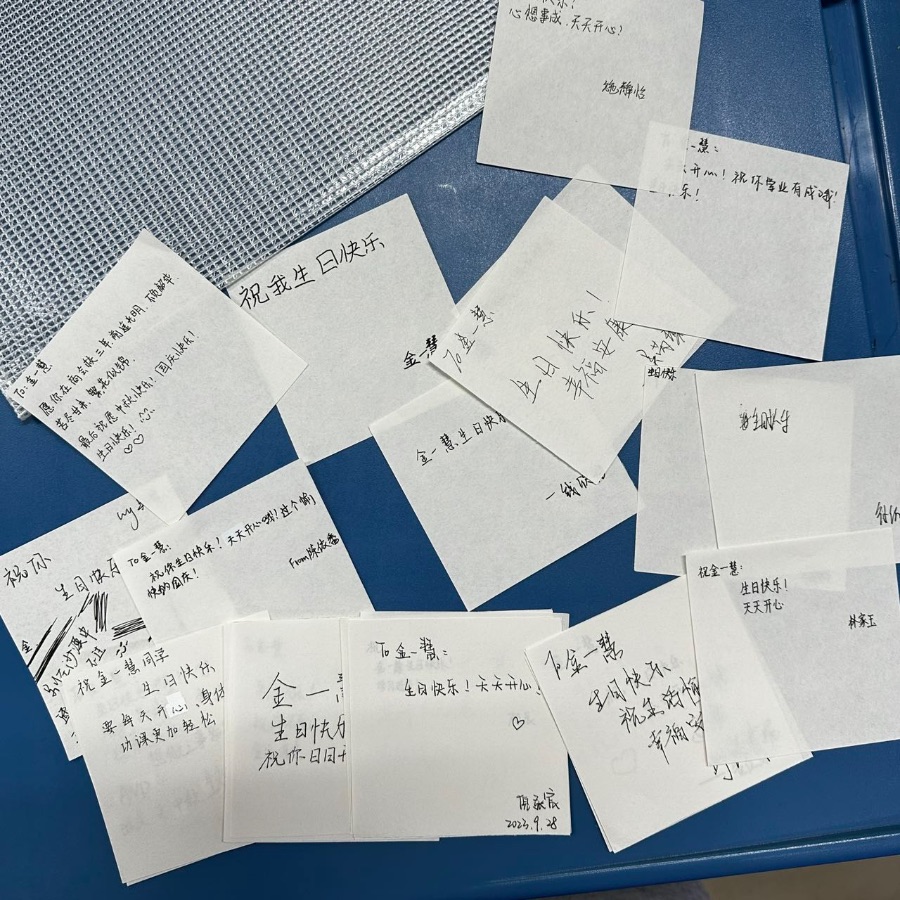 我们0552301班实行了生日祝福计划,在班里每一个人生日的时候全班同学都会给她/他送上一句真诚的生日祝福。这个活动让同学们的距离更近,也能更加的了解对方。