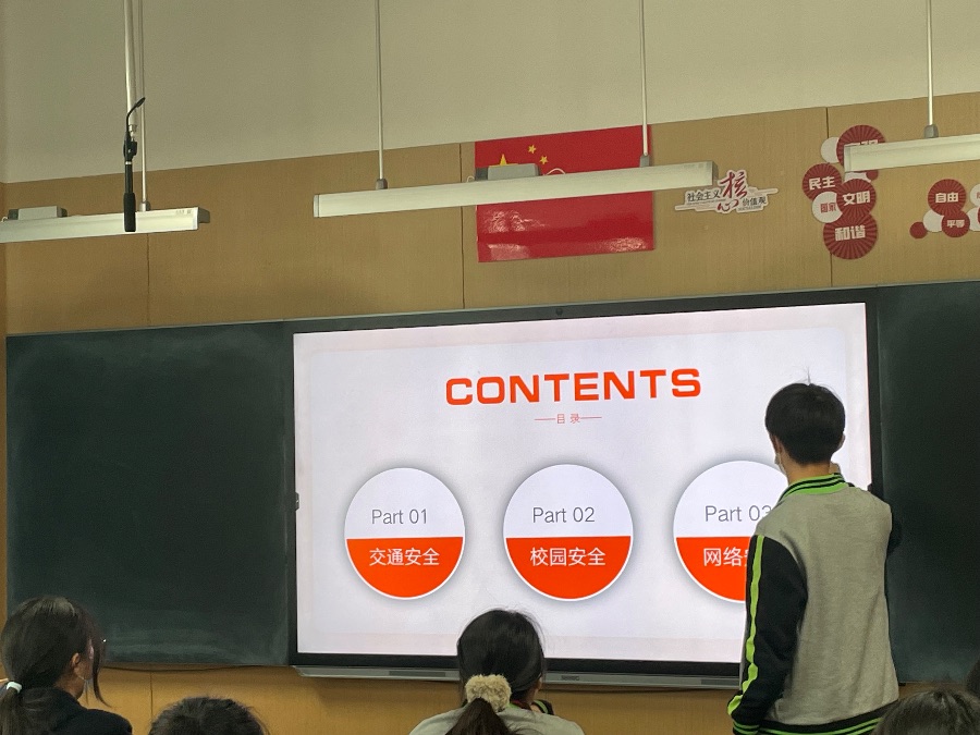 11.13班会课!开展了有关安全教育主题的班会,分别从交通安全、校园安全和网络安全来开展。