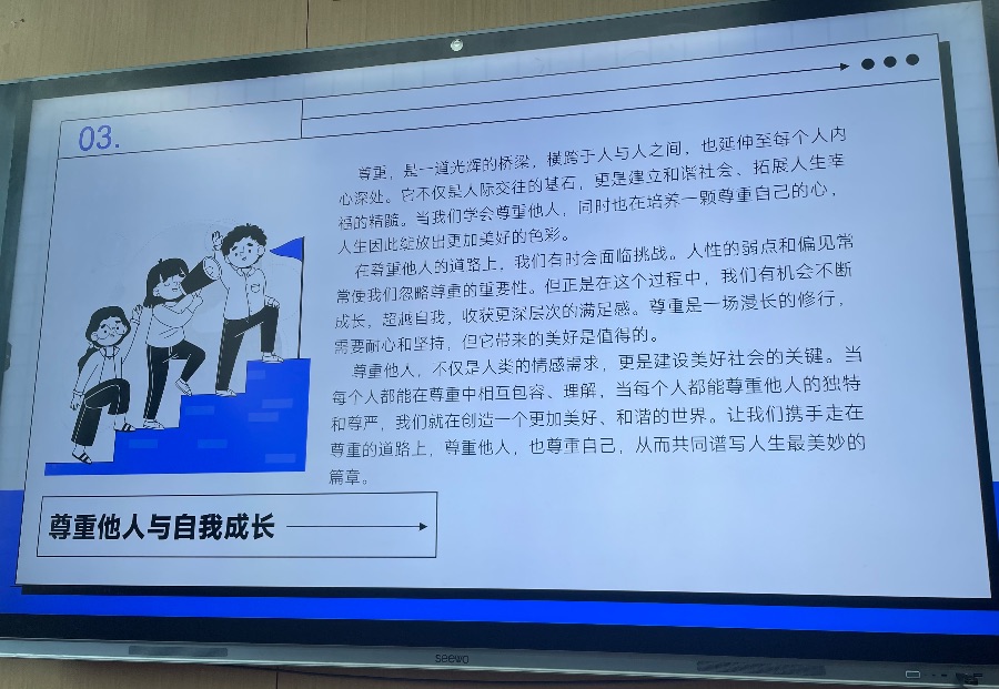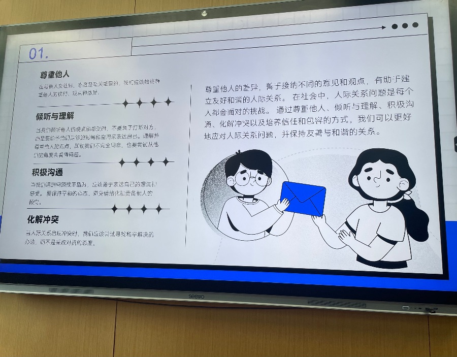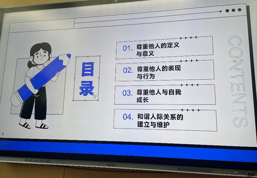 2024.3.12开展了尊重他人与和谐人际关系的主题班会。