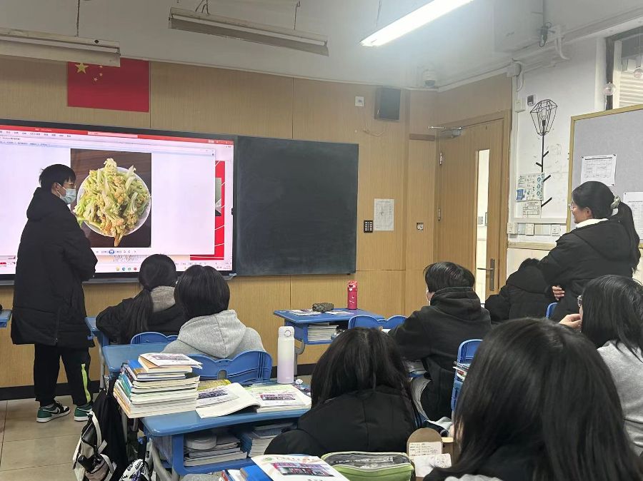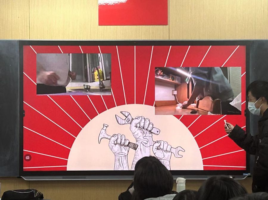 展示了同学们在寒假中劳动视频,学做菜的感想的一个分享