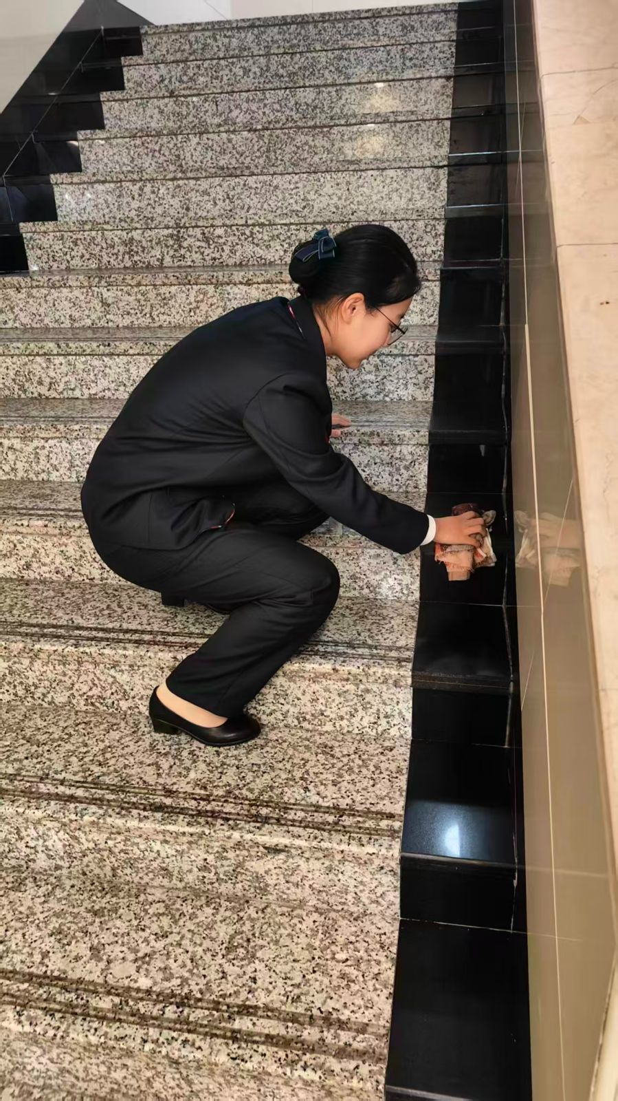 本周迎来了我班第一次在校的值星活动,我怀着激动与新奇,穿上西装皮鞋,开始了为期一周的值星活动。我非常荣幸担任了1楼的组长,为队员们分配任务。劳动期间,我负责大小楼梯的清扫,一开始我还十分不适应,但在一天天的磨炼中渐渐找到了适应的节奏。劳动虽然十分辛苦,但每每打扫完我不免内心成就感满满,这让我尝到了为校园服务的甜味。这对我说收获满满,另外通过这次值星,我明白了为校园为师生服务的乐趣,我与同学们也变得更加的亲近,离社会职场也更近一步!