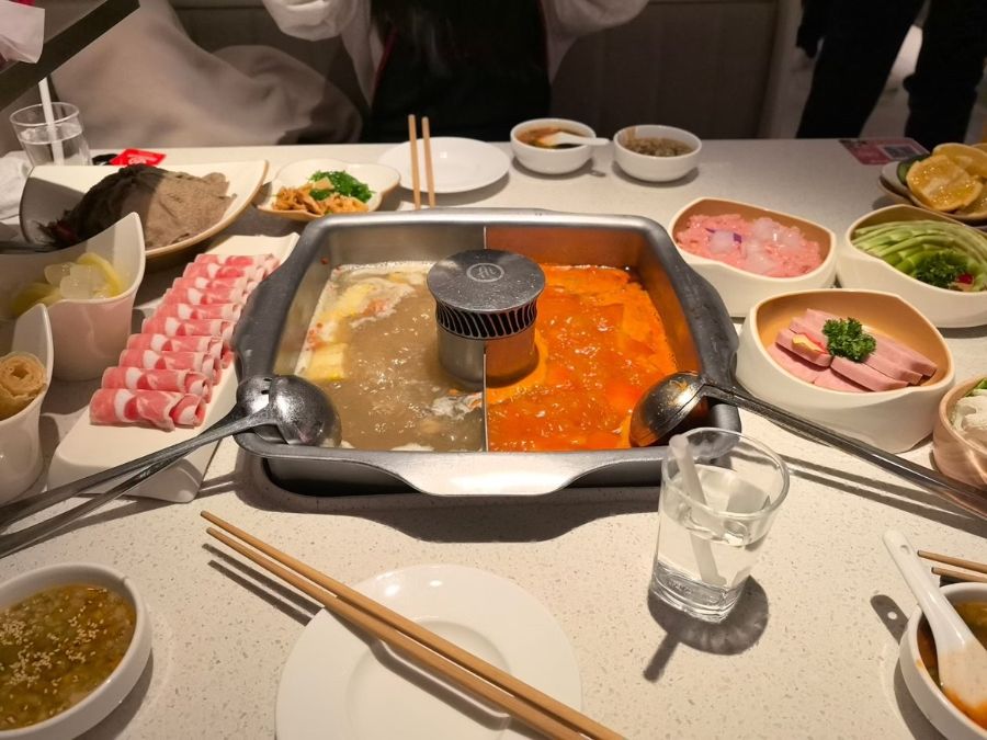 冬日里的快乐,是被这桌海底捞火锅牢牢锁住的。鸳鸯锅底咕嘟咕嘟地翻着泡,红汤那边浮着鲜亮的牛油辣油,香气霸道地往鼻尖钻,清汤锅则飘着菌菇和骨汤的温润鲜醇,两种风味撞在一起,光是闻着就让人咽口水。