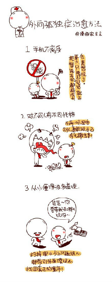 外向的人也会孤独吗?答案是肯定的。昨天,一组关于“外向孤独症的8个特征”的漫画走红网络,让很多人表示,非常生动,纷纷躺枪!微博上一个名为“呆呆”的漫画小人物,将外向孤独症的8个特征演绎得淋漓尽致,让人直接对号入座。