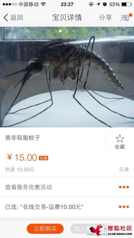 论坛>>>淘宝店家叫卖南非吸脂蚊子网友大呼“来咬我吧”