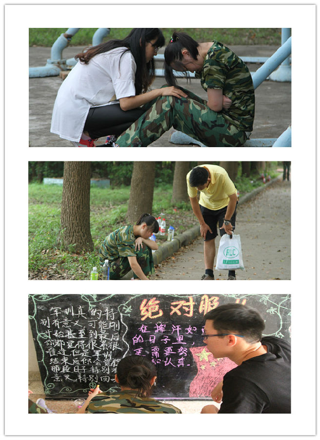 训练的背后,是我校班主任老师无尽的关怀。他们深入学生寝室,了解学生思想、训练和生活情况,鼓励和帮助学生解决困难和问题,做好军训学生的教育、管理和服务工作。