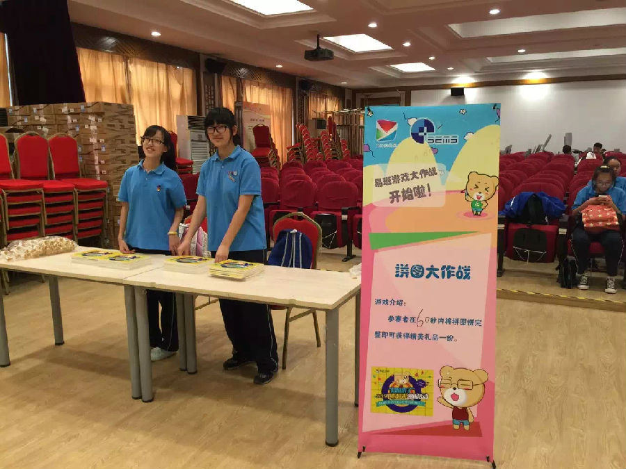 台上激烈平涂的同时,台下也展开了丰富多彩的活动:易班熊拼图,夹弹珠,吹乒乓球等小游戏同学们玩的不亦乐乎。每一个游戏站点都围着一群等待参与的同学们,离场时,几乎每一位同学手上都拿着奖品,满载而归!