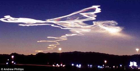 (一枚可携带多枚弹头的导弹排气尾迹形成的白鸽外形)