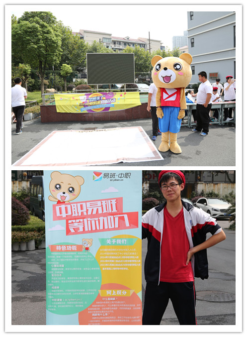 本次活动为15级新生设置了多个参与项目和丰富奖品。通过“中职易班”知识问答,以增强同学们对“中职易班”网站的认识。答对问题最快的10名学生组队完成“易班熊”拼图大挑战。同学们踊跃参与,体验区域里人头攒动,热闹非凡。从同学们的脸上能看到他们答对题目时的喜悦和得到奖品后的满足。在活动期间,还有一名同学换上“易班熊”的头套、服装穿梭在活动现场,带动气氛,其可爱的造型受到了同学们的喜爱。