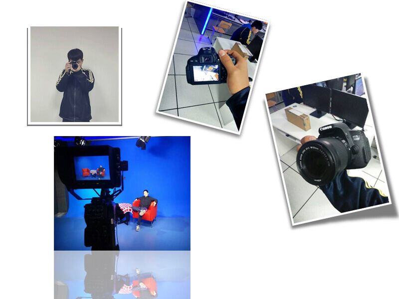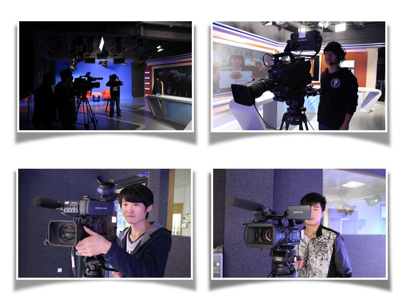 数字视频实训室;三个摄像机工位由我们班三位身材魁梧的同学担任摄影师: